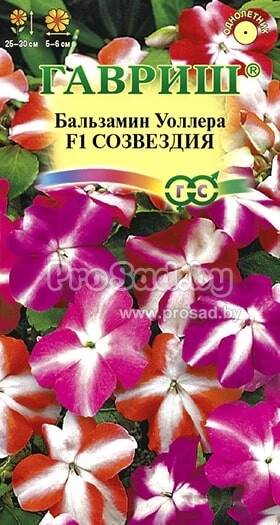 Бальзамин Уоллера F1 Созвездия, смесь - однолетнее неприхотливое растение. Куст шаровидной формы высотой 25-30 см. и диаметром 20-30 см.