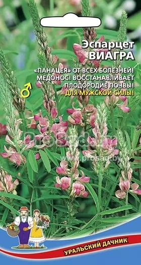 Эспарцет Виагра - это небольшой многолетний кустарник с сиреневыми (белыми, желтыми, пурпурными или розовыми) цветами, ствол которого обильно усеян шипами.