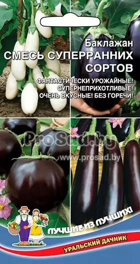 Баклажан Смесь Суперранних сортов - невероятная смесь сверхурожайных, суперранних, холодостойких, неприхотливых сортов. Техническая спелость наступает на 95-100-й день. Биологическая - через 125-130 дней после всходов.