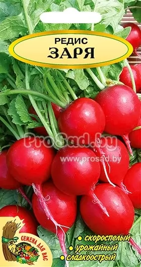 Редис Заря - скороспелый (21 день), высокоурожайный сорт с дружным созреванием. Пригоден для выращивания в открытом и защищённом грунте.