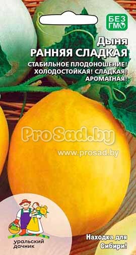 Дыня Ранняя сладкая - среднеранний, стабильно плодоносящий сорт. Рекомендуется для выращивания в открытом грунте.