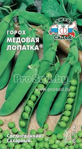 Горох Медовая лопатка - среднеранний сорт сахарного гороха. Период от всходов до получения урожая: 60-75 дней.