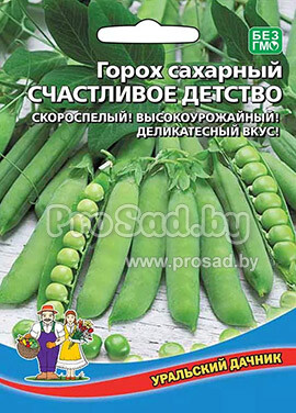 Горох сахарный Счастливое детство - скороспелый, высокоурожайный сорт сахарного гороха. От всходов до первого сбора 65–70 дней.