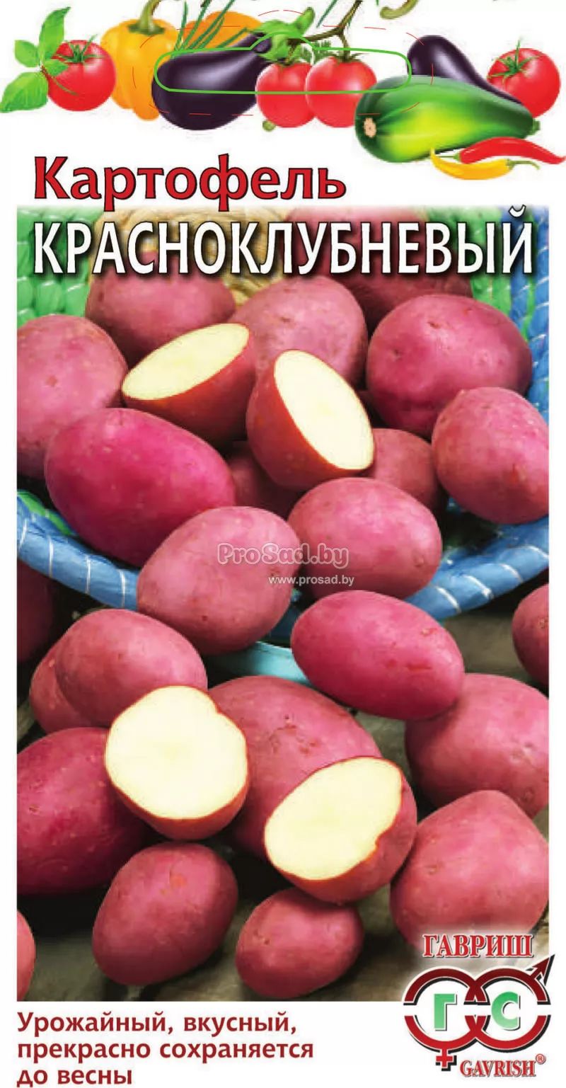 Картофель Красноклубневый - cреднеспелый сорт-популяция столового картофеля. Для кулинарной переработки и хранения. Клубни округлые, с желтой гладкой кожурой. Один из лучших коммерческих сортов с интенсивным формированием высококачественных клубней.