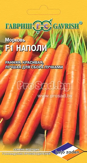 Морковь F1 Наполи - раннеспелый гибрид голландской селекции агрофирмы "Bejo Zaden". Период от всходов до технической спелости: 67-107 дней.