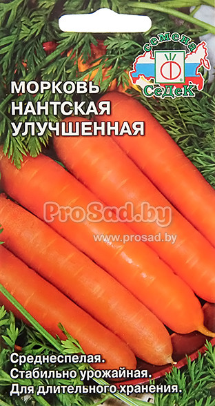 Морковь Нантская улучшенная - среднеспелый сорт, улучшенный по выравненности и товарным качествам корнеплодов благодаря отбору. Период от всходов до технической спелости корнеплодов: 88-108 дней.