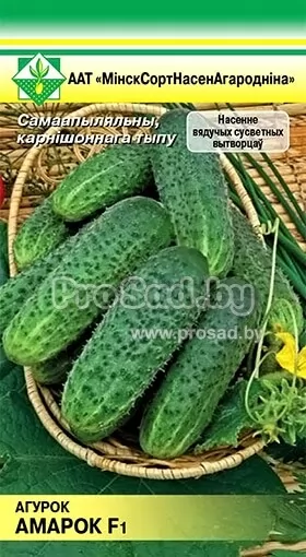 Огурец F1 Амарок - среднеранний, корнишонного типа, голландской селекции фирмы Bejo Zaden. В плодоношение вступает на 48-52-й день после всходов. Рекомендован для выращивания в открытом и защищённом грунте.