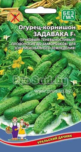 Огурец F1 Задавака - раннеспелый партенокарпический пучковый гибрид корнишонного типа для плёночных теплиц и укрытий. Период от всходов до начала плодоношения: 43-45 дней.
