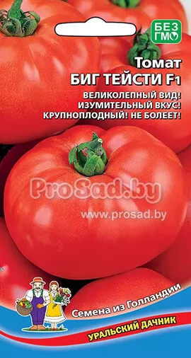 Томат Биг Тейсти F1 - среднеранний, высокорослый, высокоурожайный. Предназначен для выращивания в открытом грунте или плёночных теплицах.