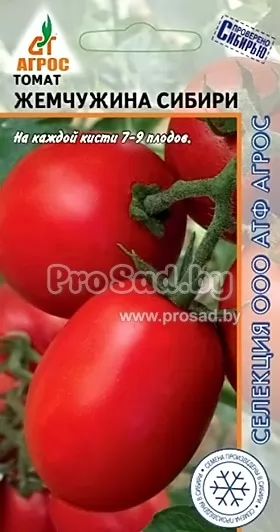 Томат Жемчужина Сибири - среднеранний индетерминантный сорт сибирской селекции, с высокой урожайностью и отличным качеством плодов! Рекомендуется для выращивания в стеклянных и плёночных теплицах на вертикальных опорах или шпалере.