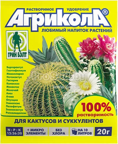 Агрикола для кактусов и суккулентов - высокоэффективное без хлорное водорастворимое комплексное удобрение, которое предназначено для подкормок кактусов и суккулентов.