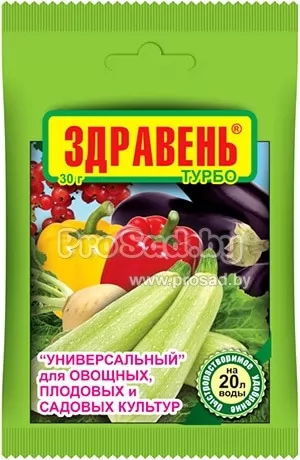 Здравень Турбо Универсальный - иногда садоводам и огородникам в условиях дефицита времени необходимо произвести подкормку различных растений, а специализированных видов удобрения «ЗДРАВЕНЬ » под рукой нет. В этом случае Вам на выручку придет «ЗДРАВЕНЬ турбо универсальный», который также содержит все необходимые вещества. Конечно, эффект от такой подкормки будет несколько меньше, но все же он будет весьма высоким. Ведь известно, что хорошее решение в нужное время всегда лучше, чем прекрасные решения не вовремя.